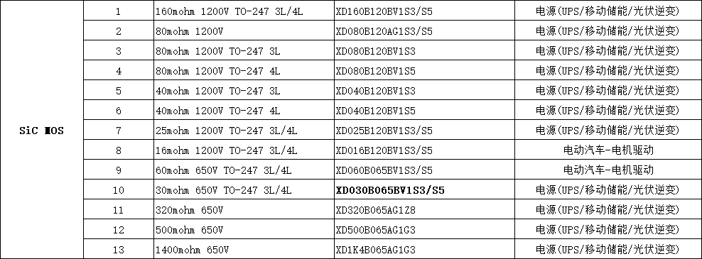 XD030B065BV1S3/S5 芯達(dá)茂 SiC MOS 30mohm 650V TO-247 3L/4L