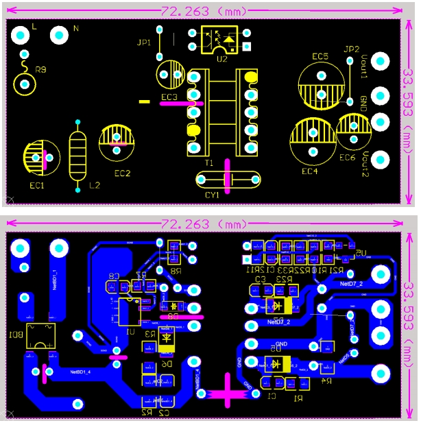 實物圖展示了BPA8604D電源模塊的緊湊結構和簡潔布局。整個電路板采用了單面板設計,尺寸僅為72mm×33.5mm,適合安裝在空間有限的設備中。電路板上的元件布局合理,走線清晰,便于生產制造和維修。通過實物圖,我們可以直觀地感受到BPA8604D電源模塊的高效能和可靠性,其簡潔的設計理念和精湛的制造工藝,使其成為了現(xiàn)代電源設計的典范之作。