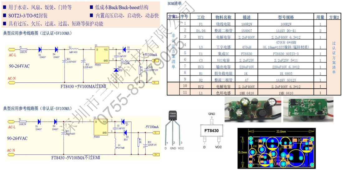 低成本Buck/buck-boost結構,SOP7封裝,集成續流和反饋二極管內置高壓啟動,啟動快,動態快具有過壓、欠壓、過流、過溫、短路等保護功能。用于水壺、風扇、飯煲、門鈴等。