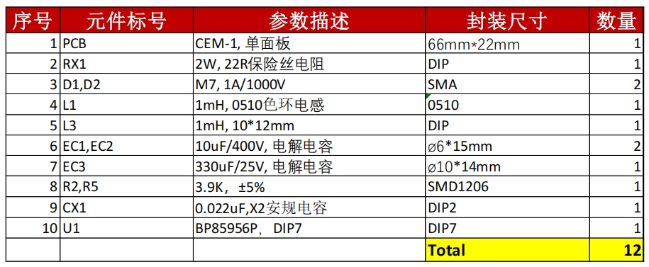 | 10 | U1 | BP85956P,DIP7 | DIP7 | 1 |