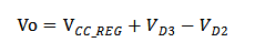 其中,VO是輸出電壓,VCC_REG是VCC恒壓反饋控制閾值(典型值5.38V),VD2是續流管壓降,VD3是VCC反饋(供電)二極管壓降。