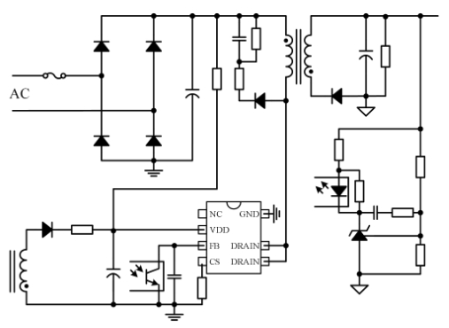 FB反饋端輸入,接收次級反饋信號并調節CS端的峰值電壓以及芯片的輸出電壓