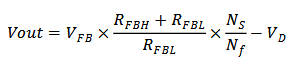 其中,Nf是變壓器輔助繞組匝數,RFBH是FB外接的上偏電阻,RFBL是FB內置的固定下偏電阻,VFB一般按照1.0V計算,VD為輸出續流管壓降。