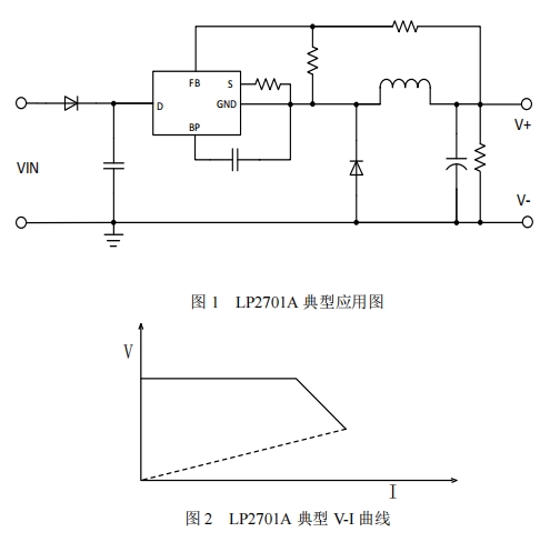 集成500V高壓功率管,無需外部啟動(dòng)電阻和輔助繞組供電,簡化外圍電路;