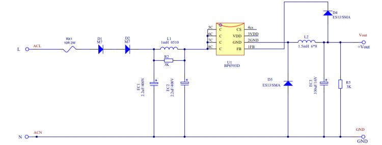 在智能家居、小家電、MCU待機供電等超小功率場景中,非隔離輔助電源因成本低、體積小、設計簡單而備受青睞。過去,OB2222E曾是這類100mA級方案的主流選擇,但受限于交期、價格及EMI裕量,工程師急需一顆直接替換、性能更優的新品。BP8593D以 SOP7封裝、內置700V MOS、PSR架構、<100mW待機功耗為核心賣點,官方參考設計5V/100mA已完整驗證,BOM、PCB、測試數據一步到位,可實現零調試替代OB2222E。本文帶你一圖看懂這顆“小鋼炮”。