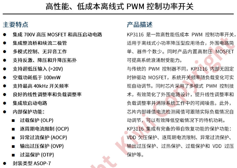 KP3116WPA 把“高壓 MOS + 高壓啟動 + 多模式 PWM”一口氣塞進(jìn) SOP-7,外圍僅 8 顆料,空載 <100 mW,系統(tǒng)成本 <0.45 元,PCB 1 cm2 搞定。看完這篇,你會明白什么叫“一粒米”電源。