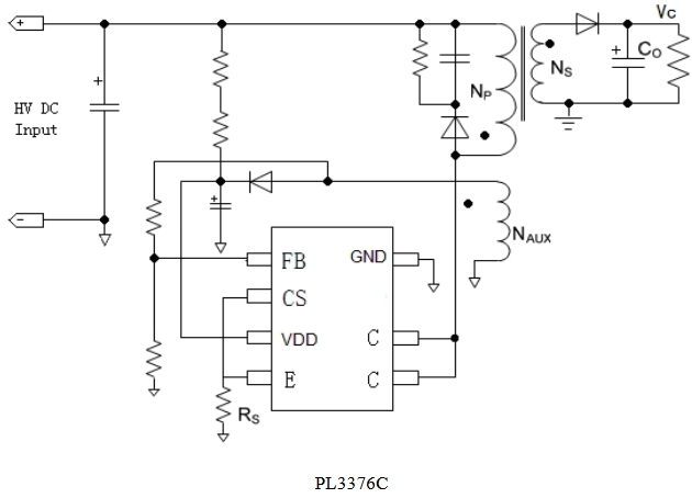 PL3376C 同時(shí)具有多種保護(hù)功能:逐周期峰值電流檢測(cè)、VDD 欠壓/過(guò)壓保護(hù)、輸出過(guò)壓保護(hù)、輸出短路保護(hù)和過(guò)溫保護(hù)等。