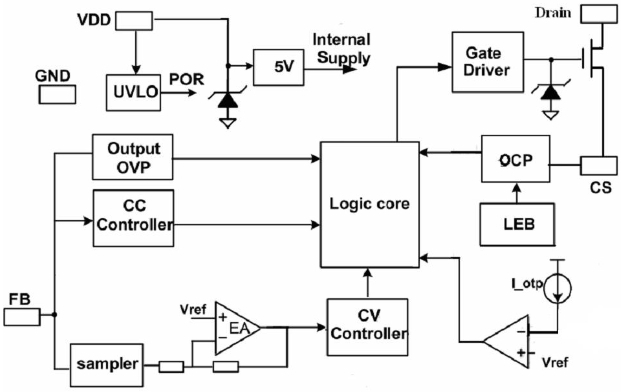 PL3327CE 是一系列高效率、高集成度、原邊調節的 PWM功率開關,其主要應用于小于 18W 的 AC/DC 反激式開關電源。PL3327C 通過去除光耦以及次級控制電路,簡化了充電器/適配器等傳統的恒流/恒壓的設計,從而實現高精度的電壓和電流調節,復合模式的應用使得芯片能夠實現低靜態功耗、低音頻噪音、高效率。而且高集成的功率 MOSFET 能夠降低外部 PCB的面積以及系統的成本。PL3327C 同時具有多種保護功能:逐周期峰值電流檢測、欠壓保護、過壓保護等。
