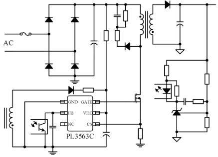 PL3563C 是一款低成本、高性能的電流模PWM控制芯片,其優異的性能可滿足小功率開關電源的低功耗要求。芯片的啟動電流典型值僅5uA,可減小啟動電路損耗;而較低的工作電流也可以提高系統的效率;芯片內置的“無噪音綠色模式”同樣能夠提高系統的效率,同時這種綠色模式能使開關電源滿足嚴格的能源損耗要求。