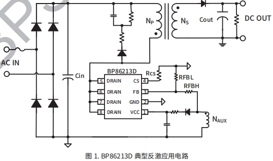 BP86213D是一款高集成度的低功耗PSR隔離CC/CV控 低待機功耗<75mW 制芯片。芯片工作在電感電流斷續(xù)導(dǎo)通模式,適用于 集成高壓啟動和供電電路 85Vac~265Vac全范圍輸入電壓的隔離反激電源。