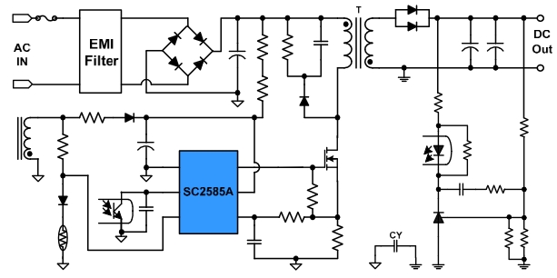 SC2585A 是一款應用于 65W 的電流模式 PWM 電源控制芯片。SC2585A 采用多模式加