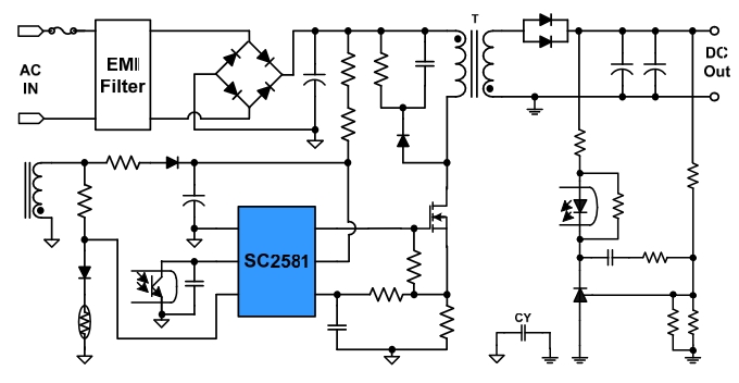 SC2581 是一款電流型多模式 PWM 電源控制芯片,避免了音頻噪音。SC2581 采用多模式的效率均衡控制技術(shù),提升了系統(tǒng)效率;峰值功率控制技術(shù)提高了系統(tǒng)的過載性能。SC2581 提供了一系列完整的保護功能,如兩級 OCP、OLP、OSP、OTP、輸出 OVP 等。