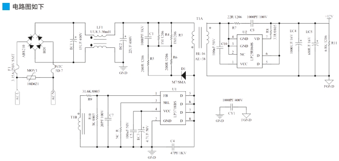 輔助電路包括輸入濾波、輸出濾波、反饋控制和保護(hù)電路。輸入濾波電路用于減少輸入電壓的波動(dòng),輸出濾波電路則用于平滑輸出電壓,提高電源的穩(wěn)定性。反饋控制電路確保輸出電壓的精確調(diào)節(jié),而保護(hù)電路則包括過流、過壓和短路保護(hù),保障電源的安全性。